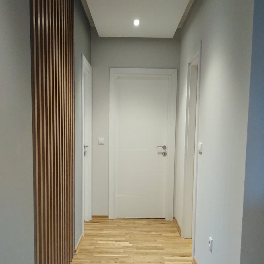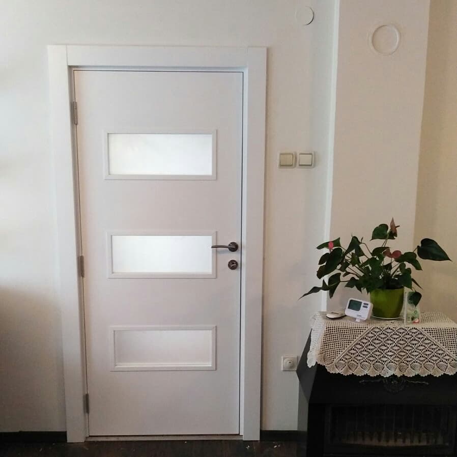 Door factory proizvodi sobna vrata od medijapana farbana poliuretanskim bojama. Štok se izrađuje iz jednog komada medijapana 40mm (nije iz delova), vratno krilo je debljine 42mm i obostrano štelujući pervajzi širine 7cm.